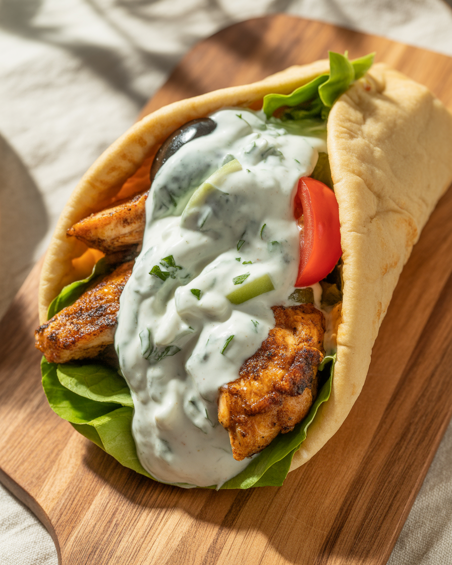 - Low-carb version: Wrap in romaine or butter lettuce leaves instead of pita.