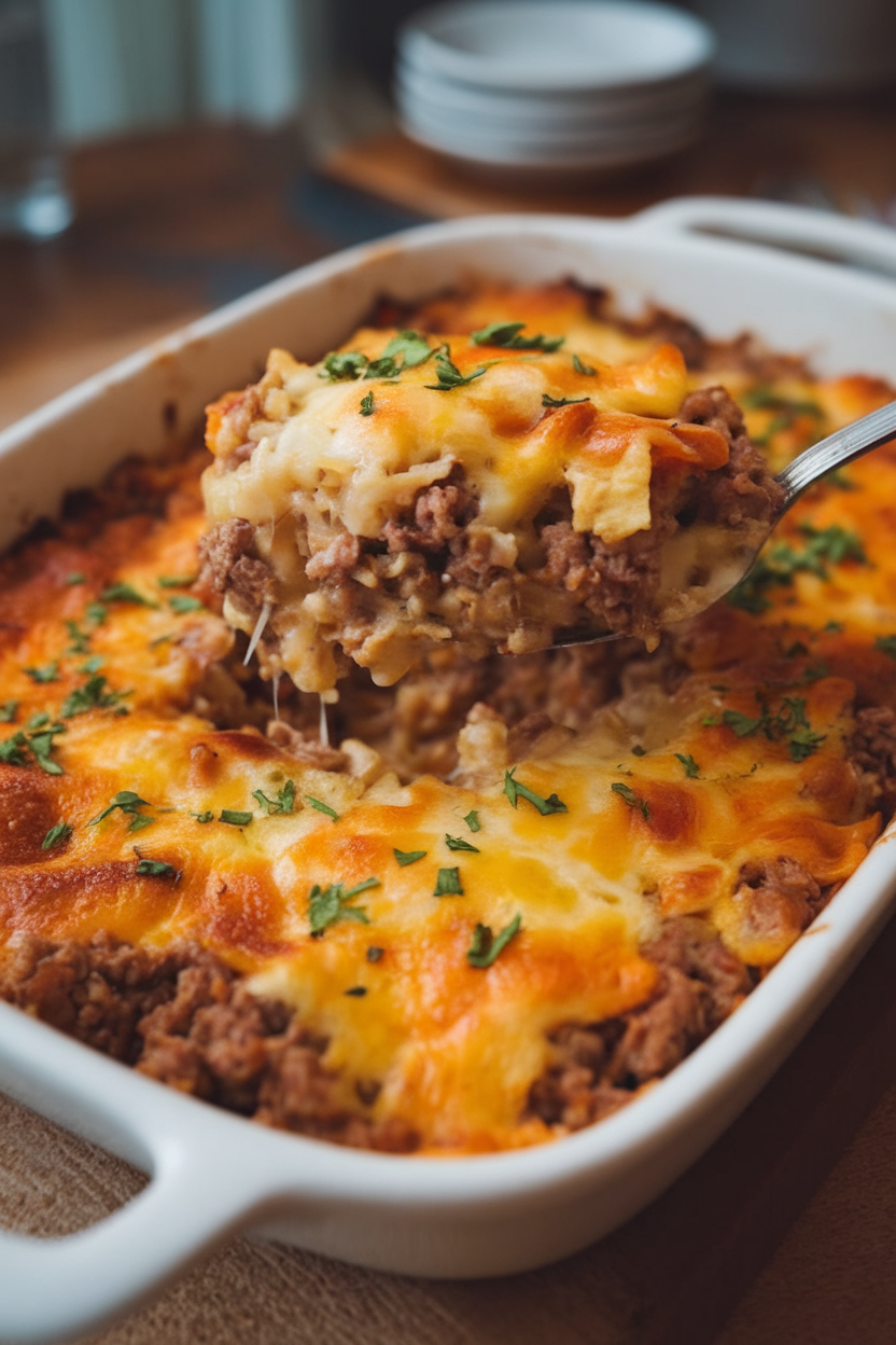 If you’re craving something cozy, hearty, and ridiculously satisfying, this Cheesy Ground Beef Rice Casserole is about to become your new weeknight favorite. It’s everything you want in a homemade meal—flavor-packed, creamy, cheesy, and filling without being complicated. Whether you’re feeding a hungry family or prepping for easy leftovers, this casserole hits the spot every single time.